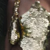Inspirada nas sereias e nas profundezas do mar, esta elegante bolsinha de ombro é confeccionada em algodão resistente e adornada com miçangas de ouro 18 quilates bordadas à mão.